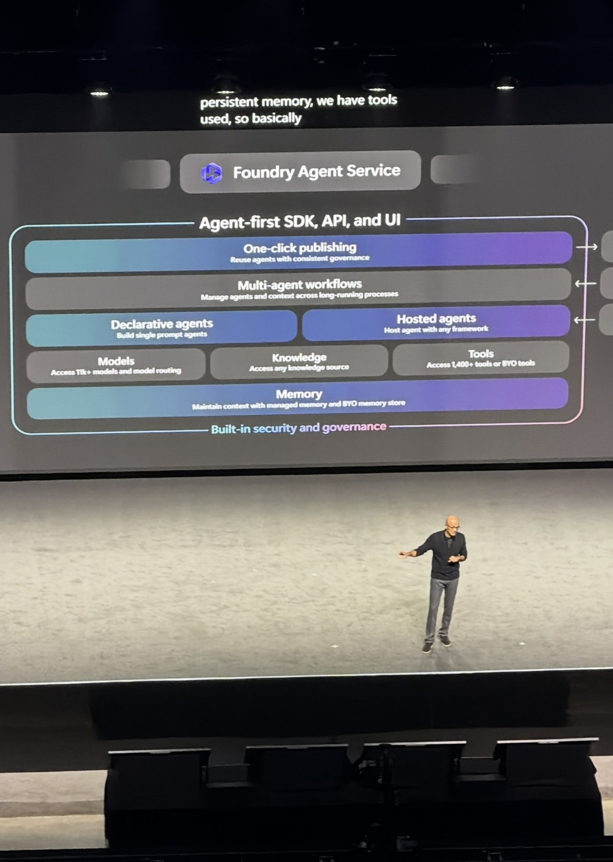 Foundry คือ platform กลางที่รวม models, context และ agent runtime เข้าด้วยกัน ตอนนี้มี 11,000+ models ให้เลือกใช้ และไมโครซอฟท์เองก็เพิ่ง launch model ใหม่หลายตัวใน 6 สัปดาห์ที่ผ่านมา ทั้ง transcription model, image model, และ voice model